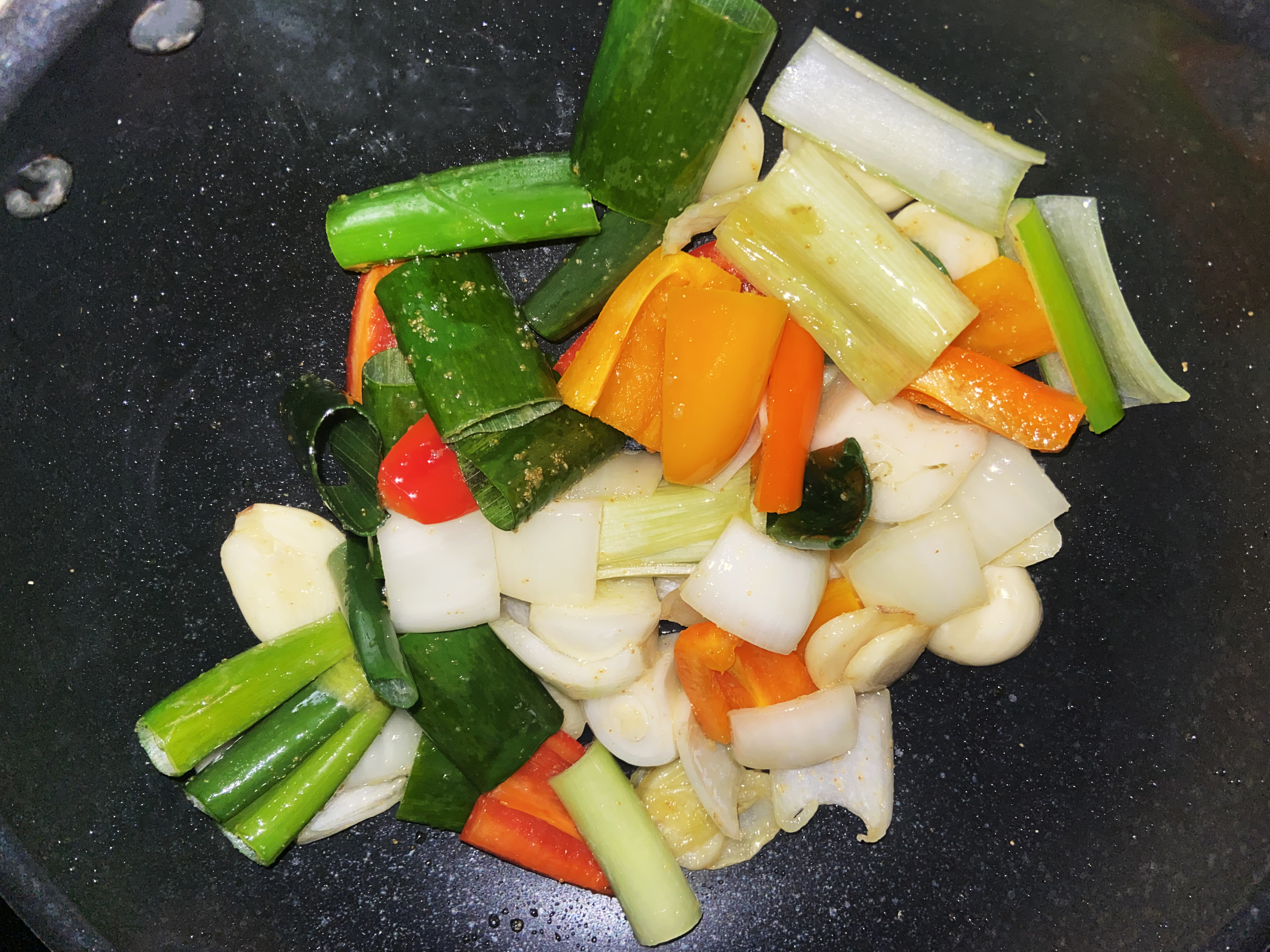 먹기 좋은 크기로 잘라뒀던 야채를 넣고 함께 볶으면서 갈릭 시즈닝을