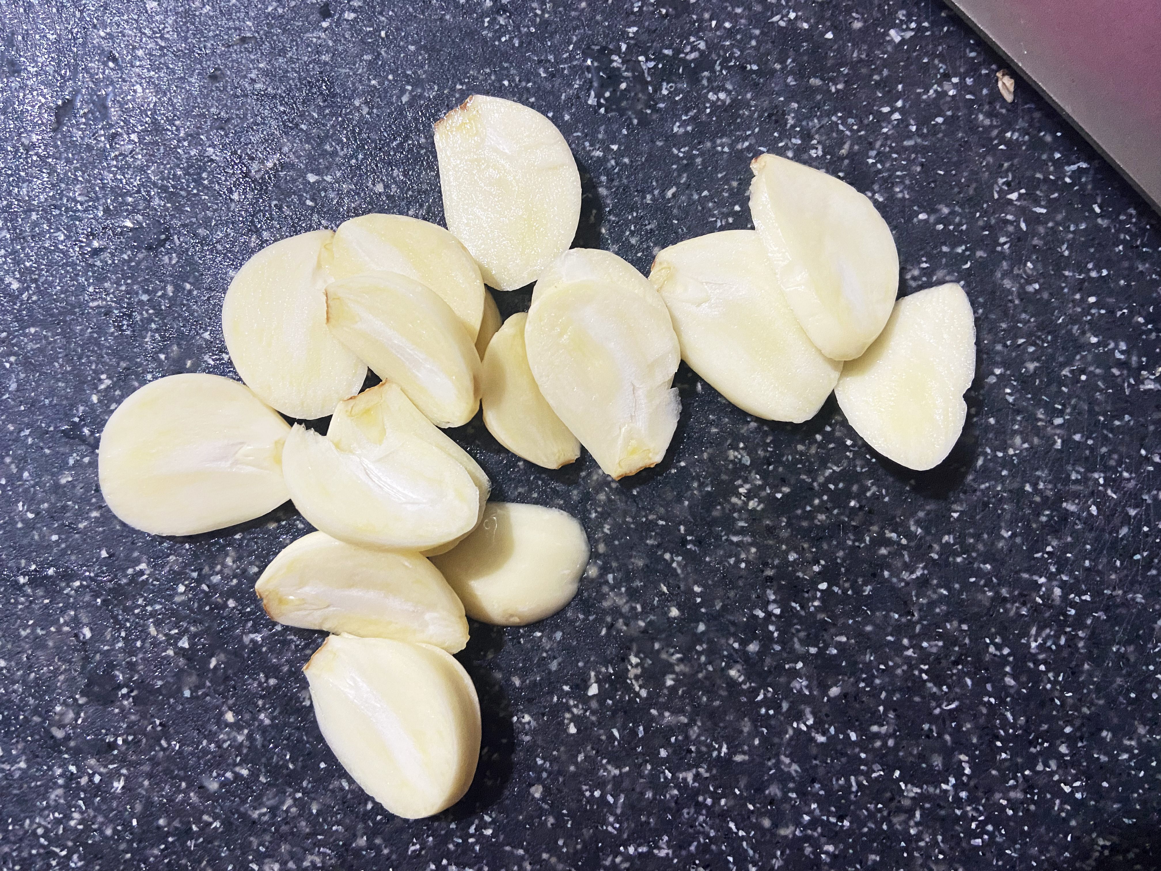 준비한 마늘도 얇게 슬라이스로 잘라 준비합니다.